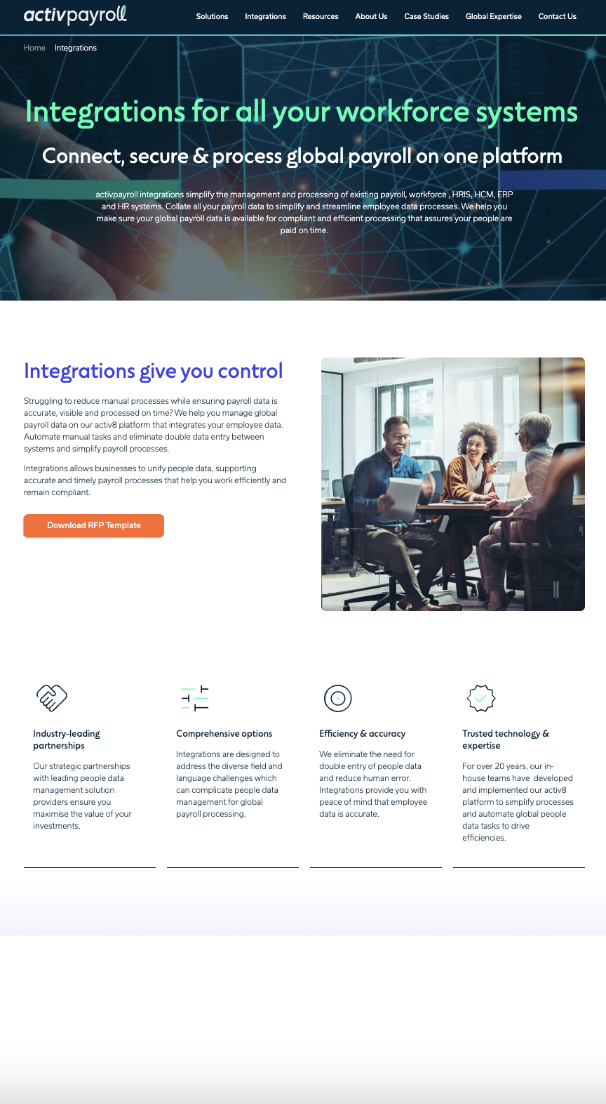 Writing high-quality, SEO-informed web content that communicated activpayroll’s core services in a way that felt clear, considered and commercially relevant. Also producing platform integration pages content, translating complex technical capabilities into language that felt digestible for a wide range of audiences.